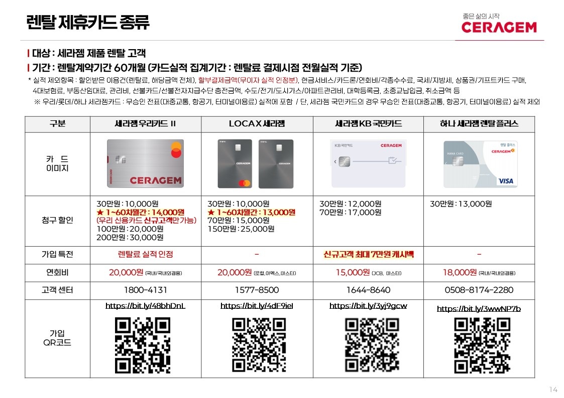 제휴카드 할인 적용시 월 렌탈료 : 19,000원